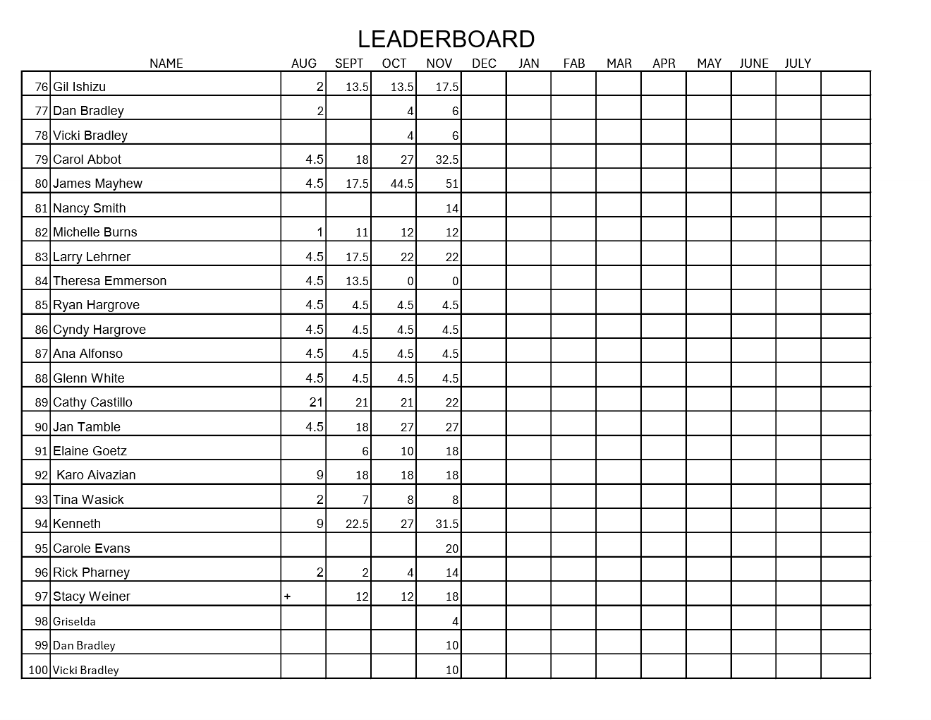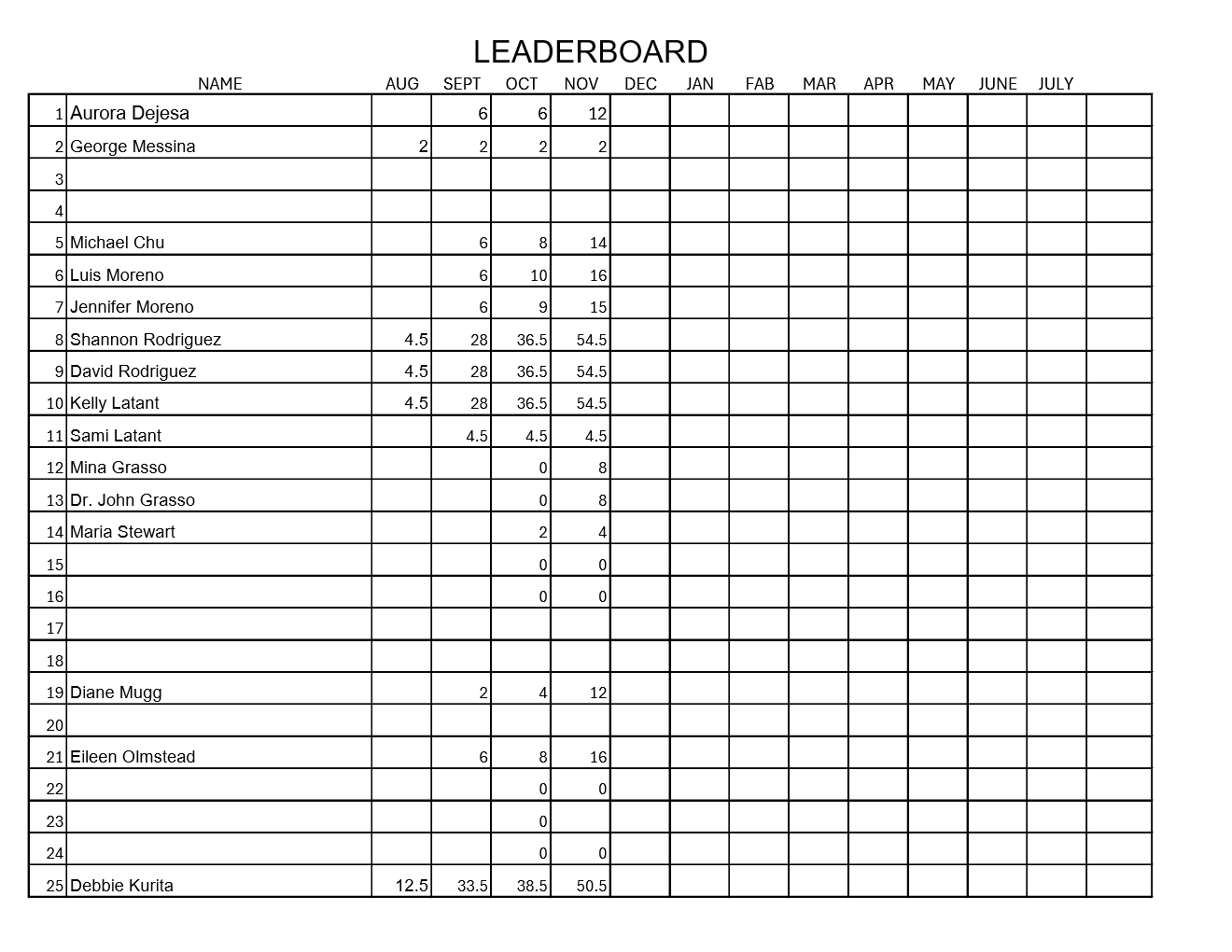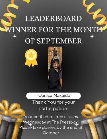 Leaderboard ranks participants in a competition or activity (dance) based on a scoring system and participation of participants displaying their relative positions from highest to lowest. This will be a fun and friendly competition for all dancers that attend Michele Adams Dance Classes and Events.