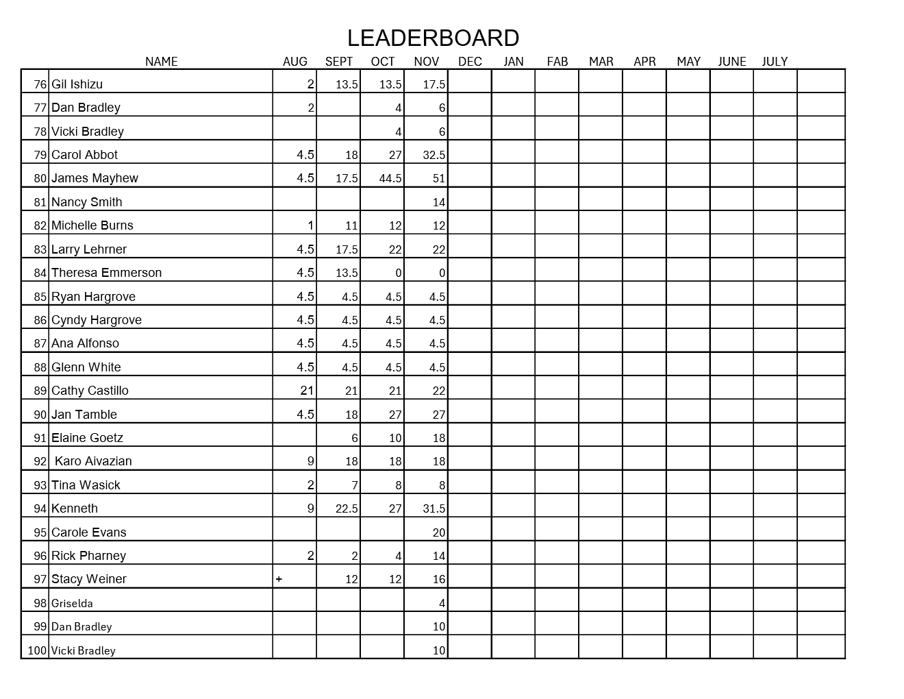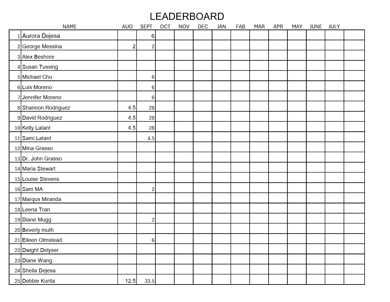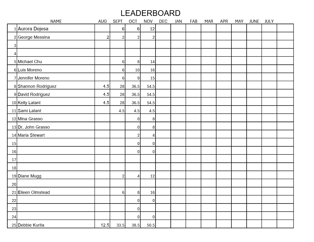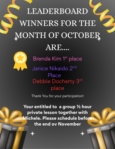 Leaderboard ranks participants in a competition or activity (dance) based on a scoring system and participation of participants displaying their relative positions from highest to lowest. This will be a fun and friendly competition for all dancers that attend Michele Adams Dance Classes and Events.